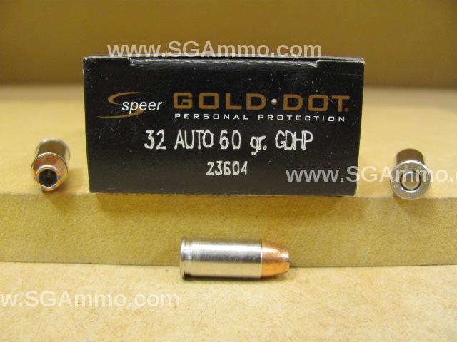 20 Round Box - 32 Auto 60 Grain GDHP Speer Gold Dot Hollow Point Ammo - 23604GD
