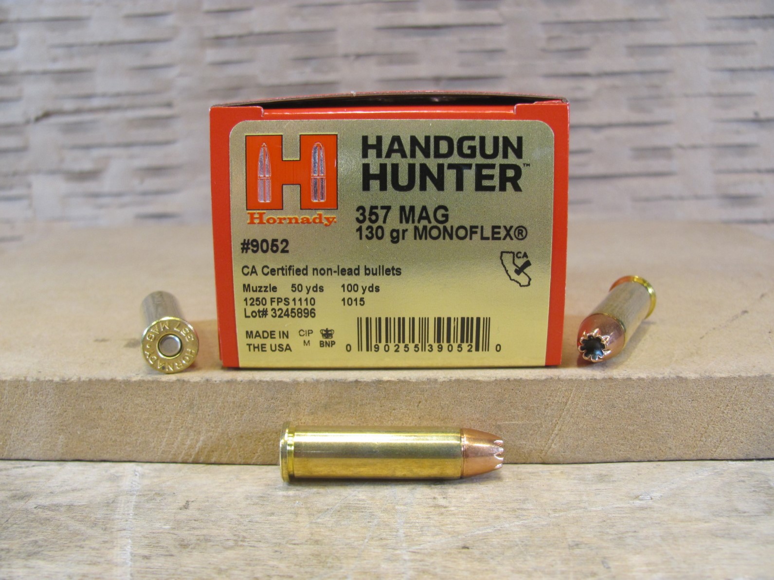 250 Round Case - 357 Magnum 130 Grain Monoflex Hornady Handgun Hunter Ammo - 9052