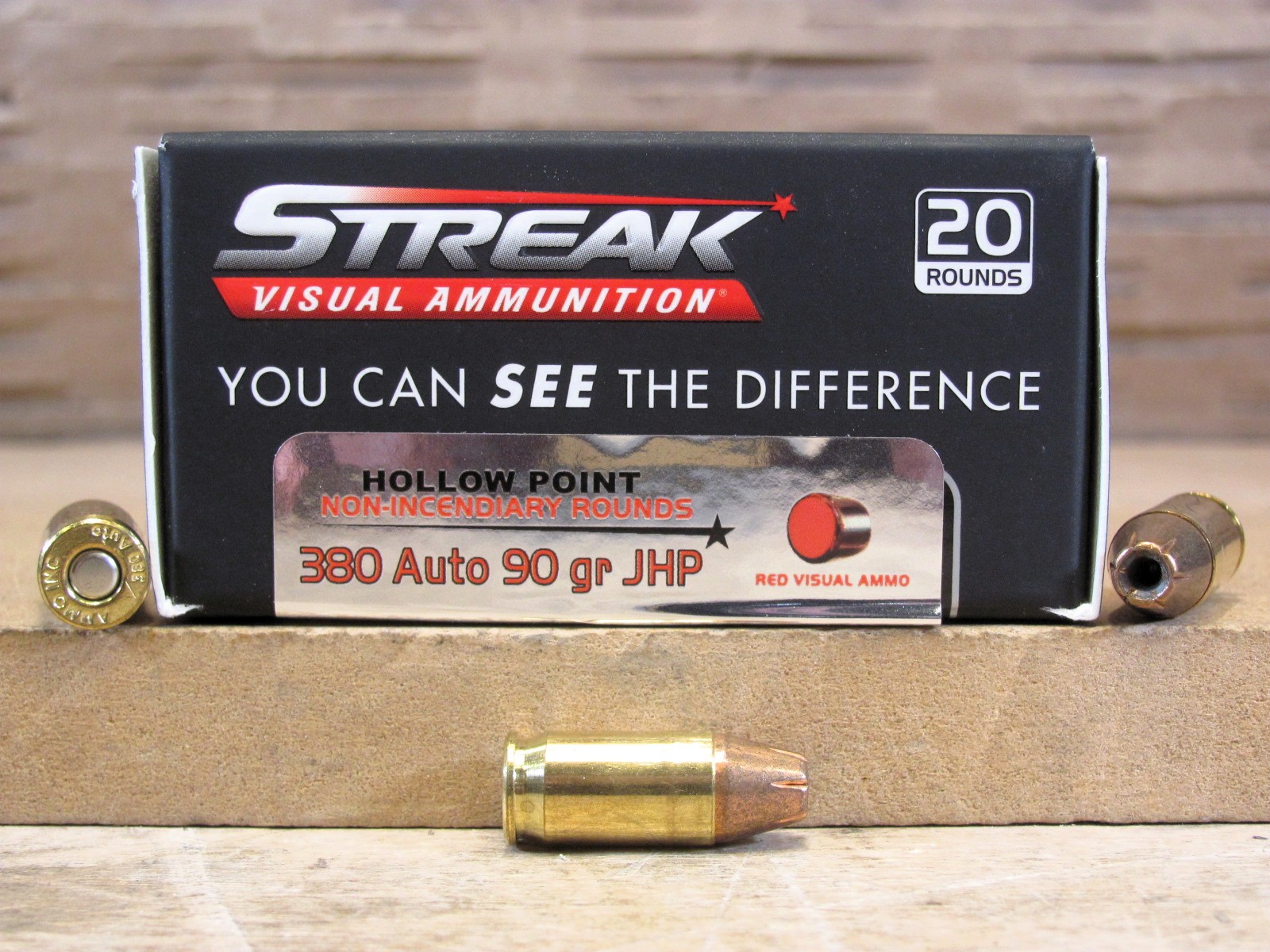20 Round Box - 380 Auto 90 Grain JHP Streak Red - Ammo Inc Closeout