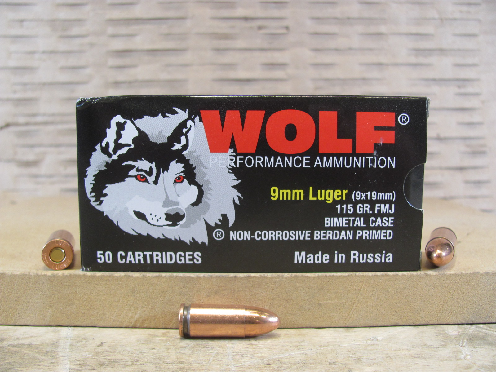 50 Round Box - Steel Case 9mm Luger 115 Grain FMJ Magtech Ammo - 9AS