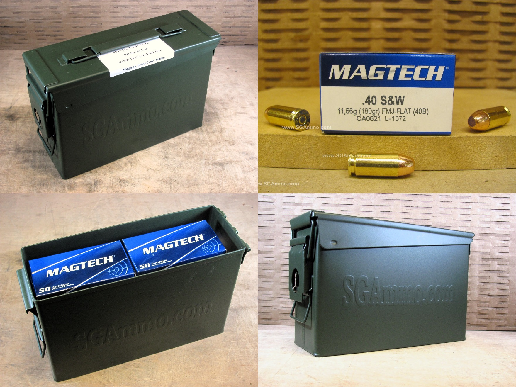 500 Round Can - 40 cal SW 180 Grain FMC-Flat Point Magtech Ammo For Sale - 40B - Packed in M19A1 Canister