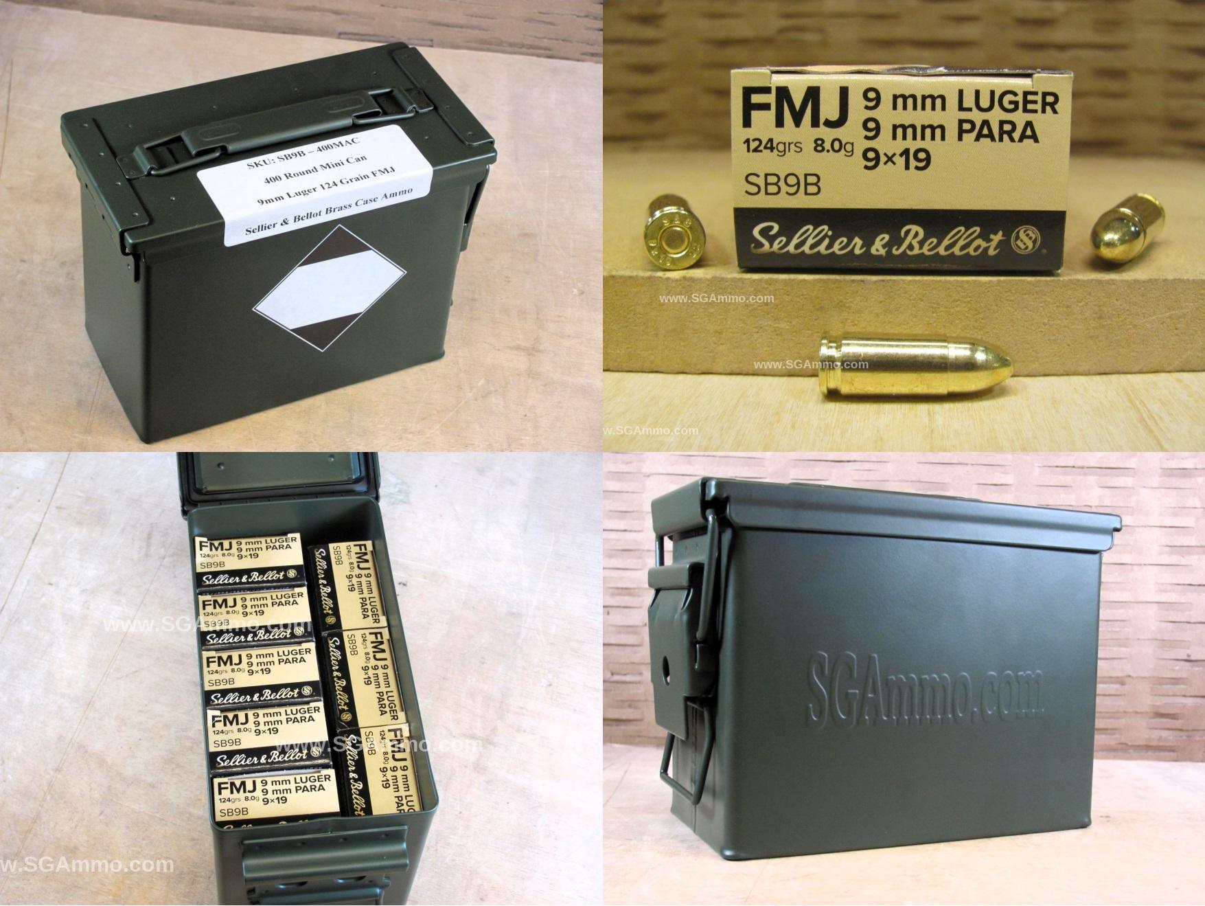 400 Round Can - 9mm Luger 124 Grain FMJ Sellier Bellot Ammo - SB9B - Packed in Mini Ammo Canister