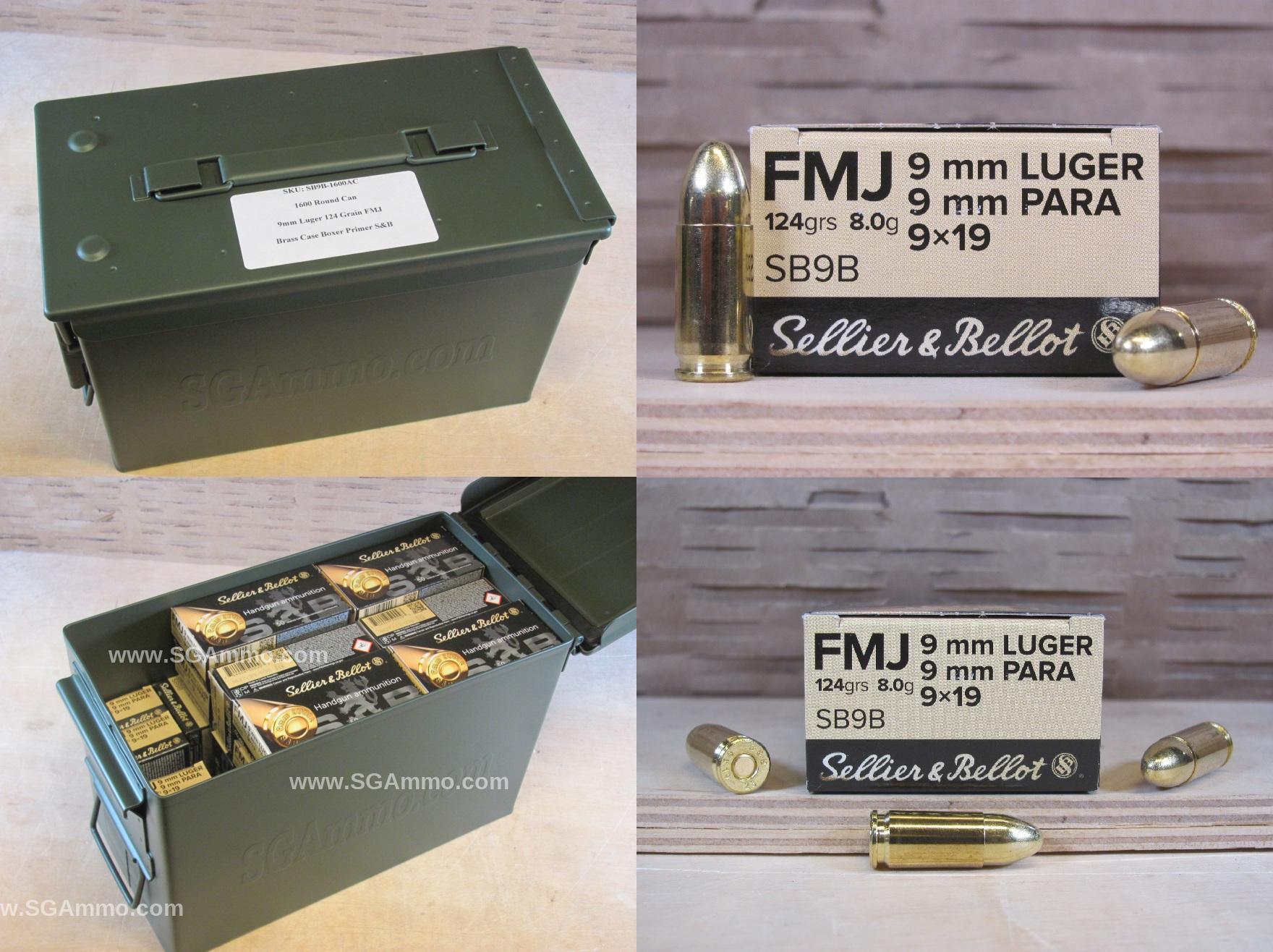 1000 Round Case - 9mm Luger 124 Grain FMJ Sellier Bellot Ammo - SB9B