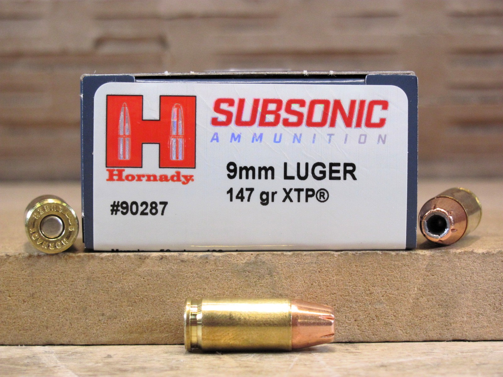 25 Round Box - 9mm Luger 147 Grain XTP Hollow Point Hornady Subsonic Ammo - 90287