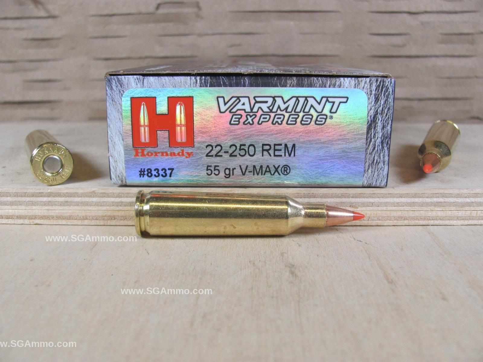 20 Round Box - 22-250 Rem 55 Grain V-Max Ammo by Hornady - 8337