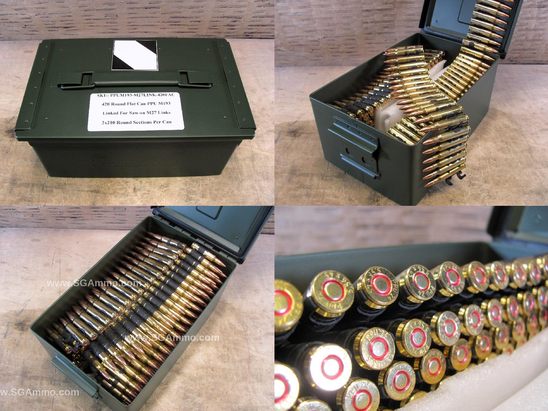 420 Round Flat Can - 5.56mm M193 55 Grain FMJ Linked For Saw on M27 Links Prvi Partizan Ammo - Packed in Metal Canister