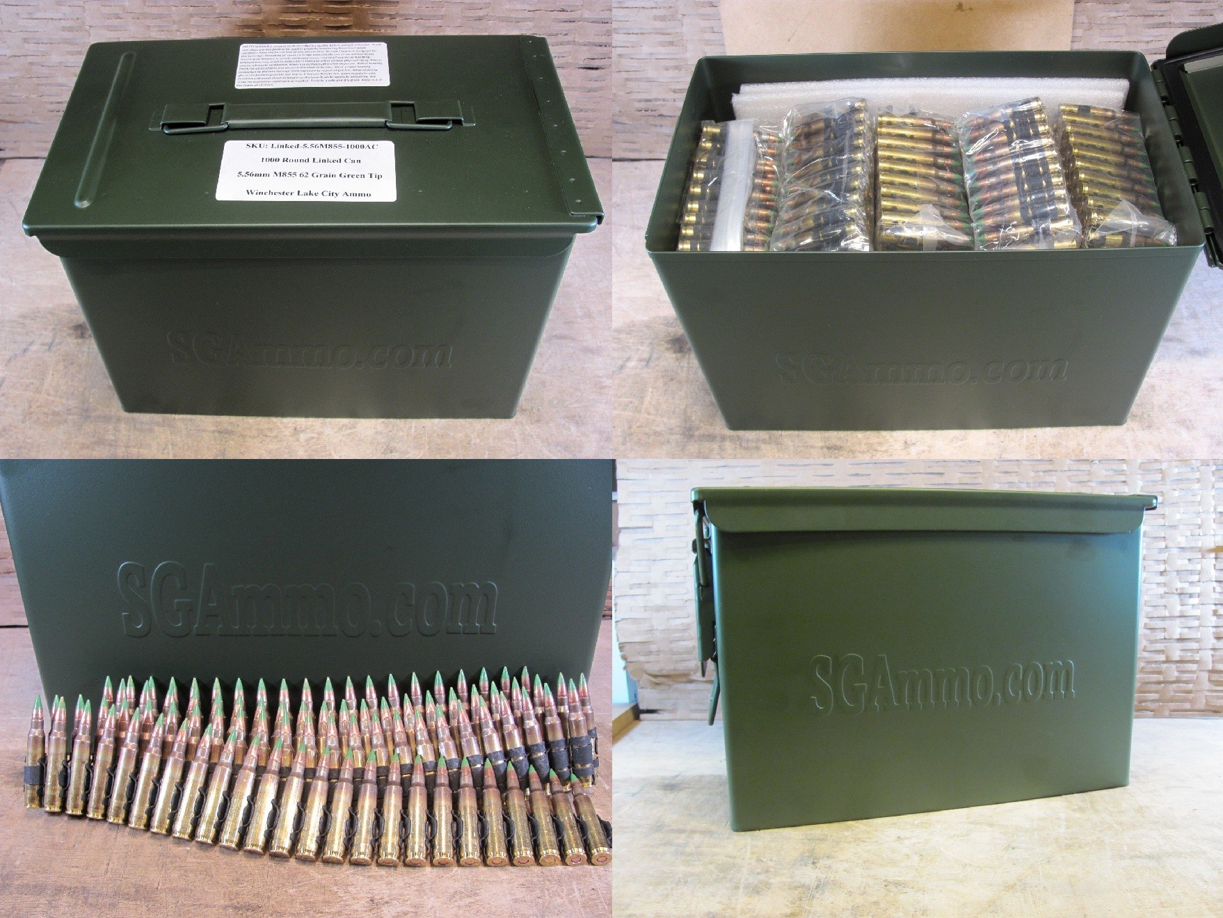 1000 Round Can - 5.56mm 62 Grain M855 Green Tip M27 Linked Winchester Lake City Ammo In PA108 Canister