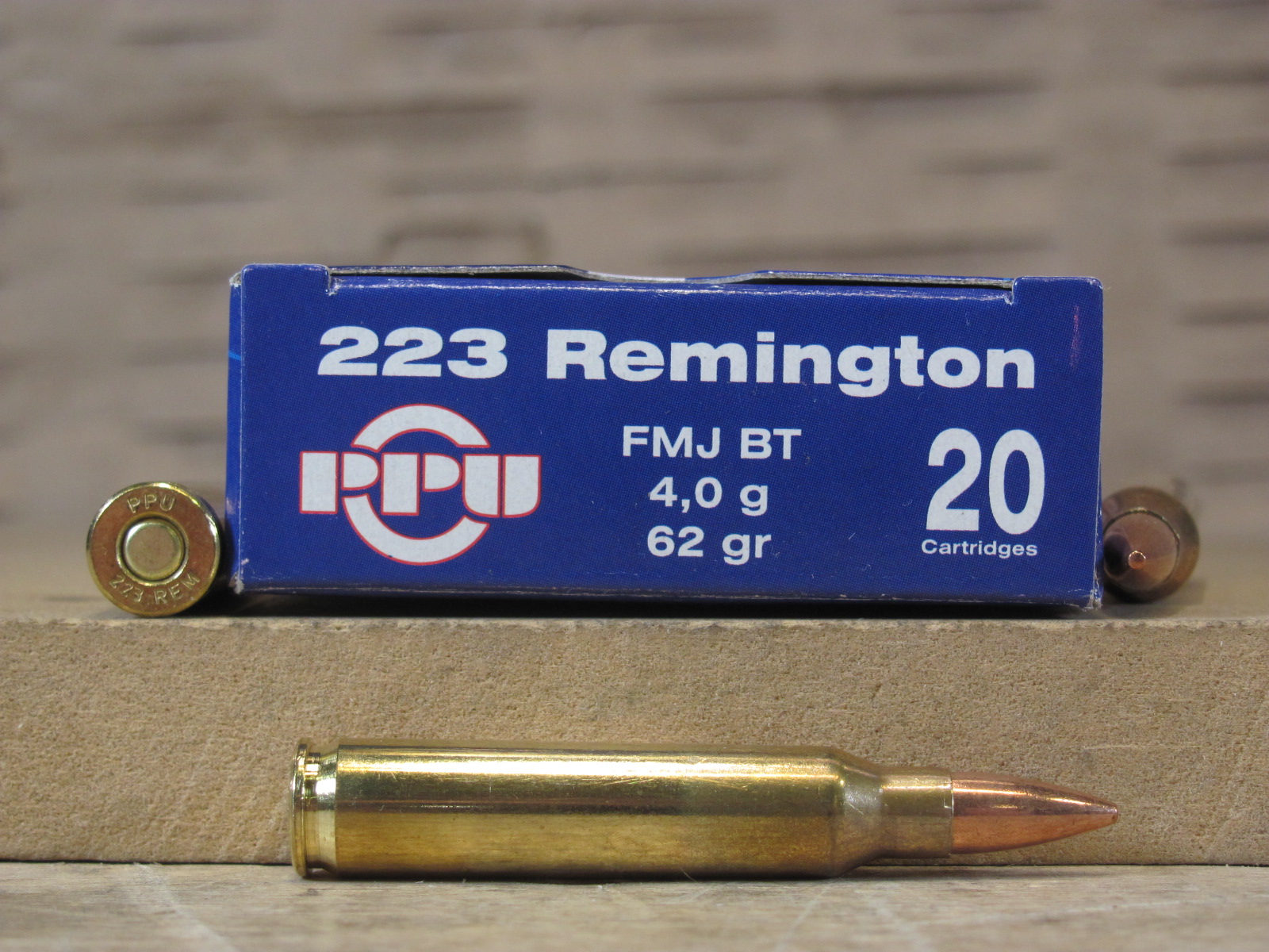 20 Round Box - 223 FMJ 62 Grain Prvi Partizan Non-Magnetic Bullet - Brass Case Ammo - PP223F2