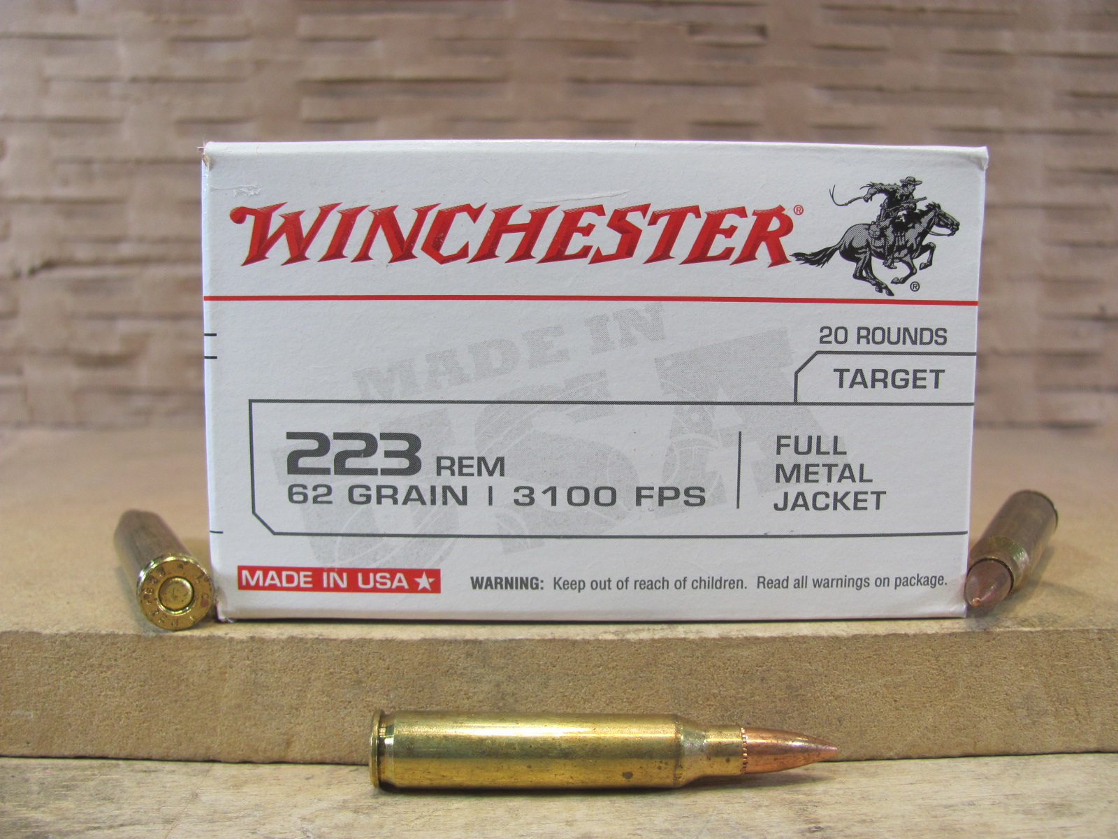 20 Round Box - 223 Rem 62 Grain FMJ Winchester Ammo - W223FMJ62