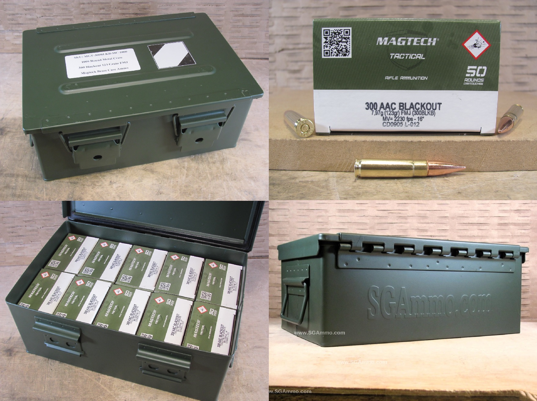 1000 Round Metal Crate Canister - 300 AAC Blackout 123 Grain FMJ Magtech Ammo - 300BLKB