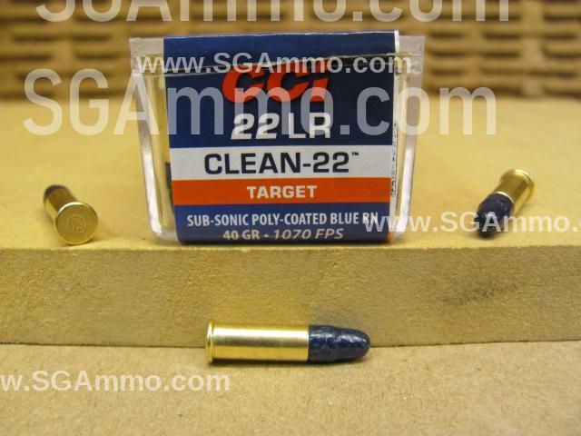100 Round Box - 22 LR 40 Grain Blue Polycoat Round Nose Subsonic CCI Clean-22 Target Ammo - 934CC