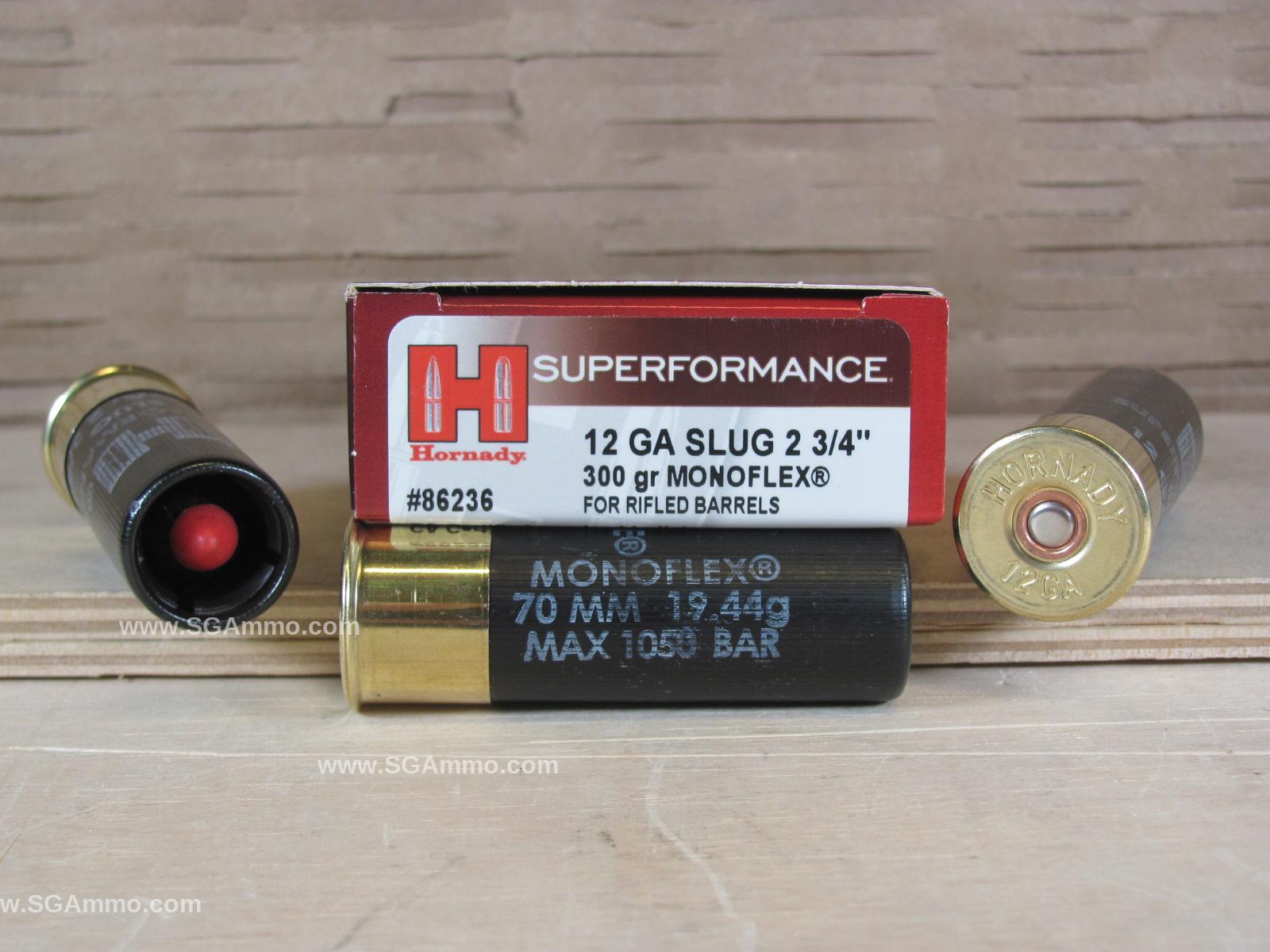 100 Round Case - 12 Gauge 2.75 Inch 300 Grain Monoflex Hornady Sabot Slug Ammo For Rifled Barrels - 86236