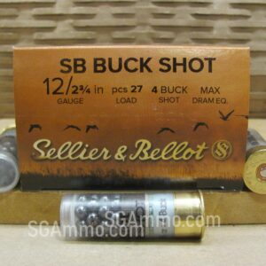 25 Round Box - 12 Gauge 2.75 Inch 27 Pellet Number 4 Buck Shot by Sellier Bellot - SB12BSB