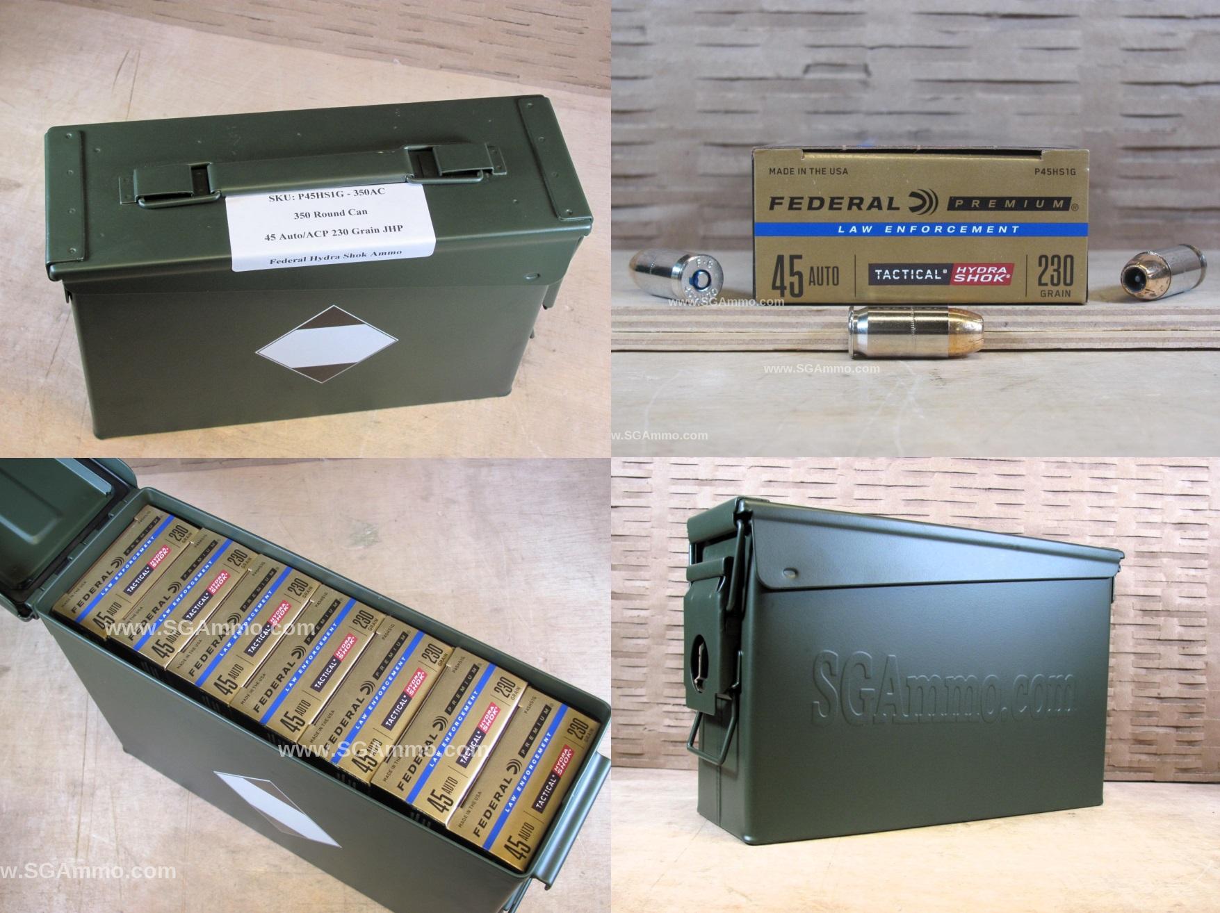 350 Round Can - 45 Auto / ACP Federal Hydrashok 230 Grain JHP Ammo - P45HS1G - Packed in M19A1 Canister