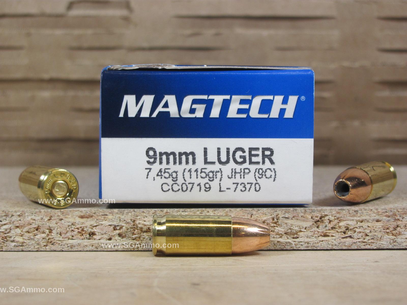 50 Round Box - 9mm Luger 115 Grain JHP Hollow Point Magtech Ammo - 9C