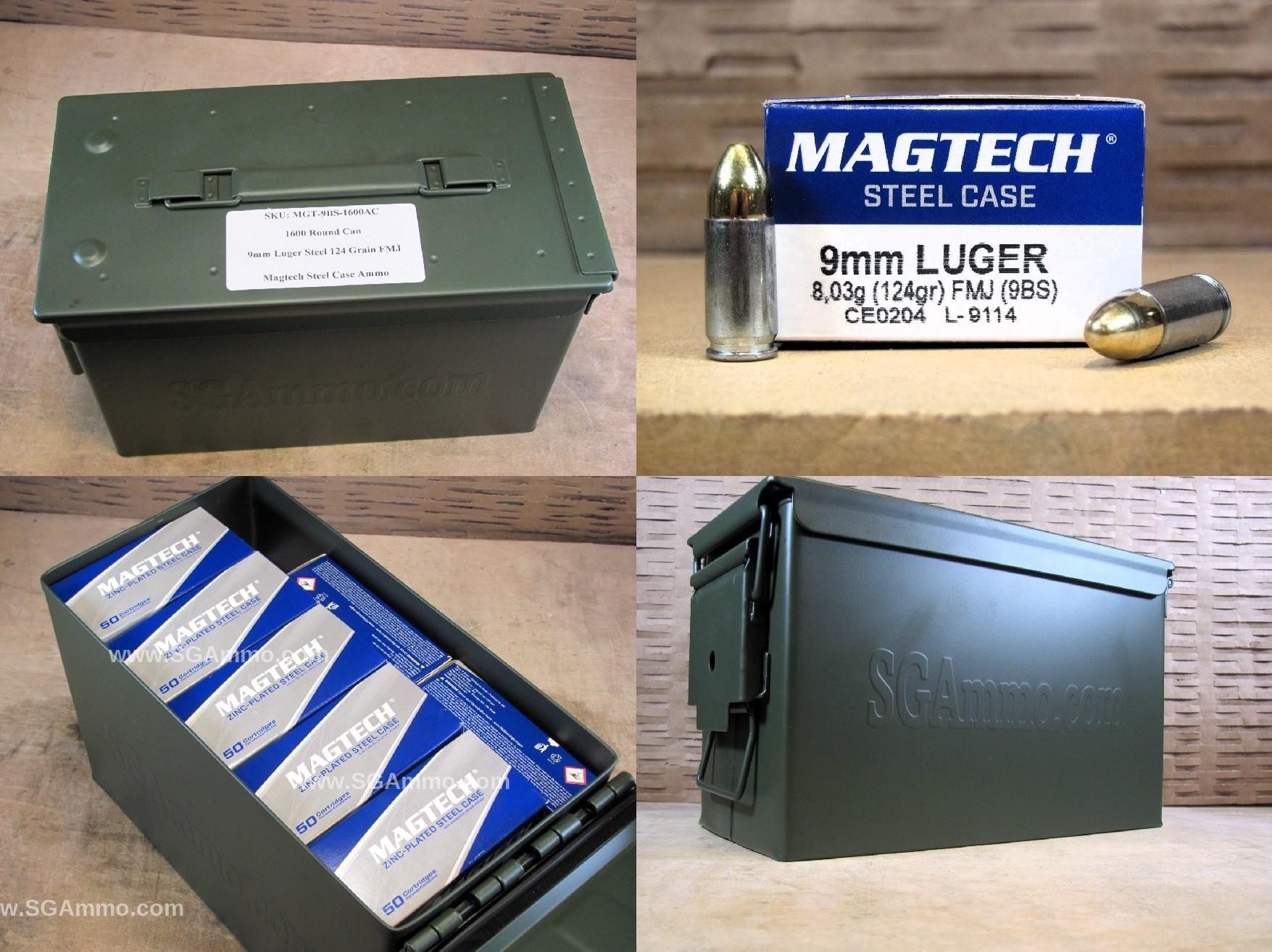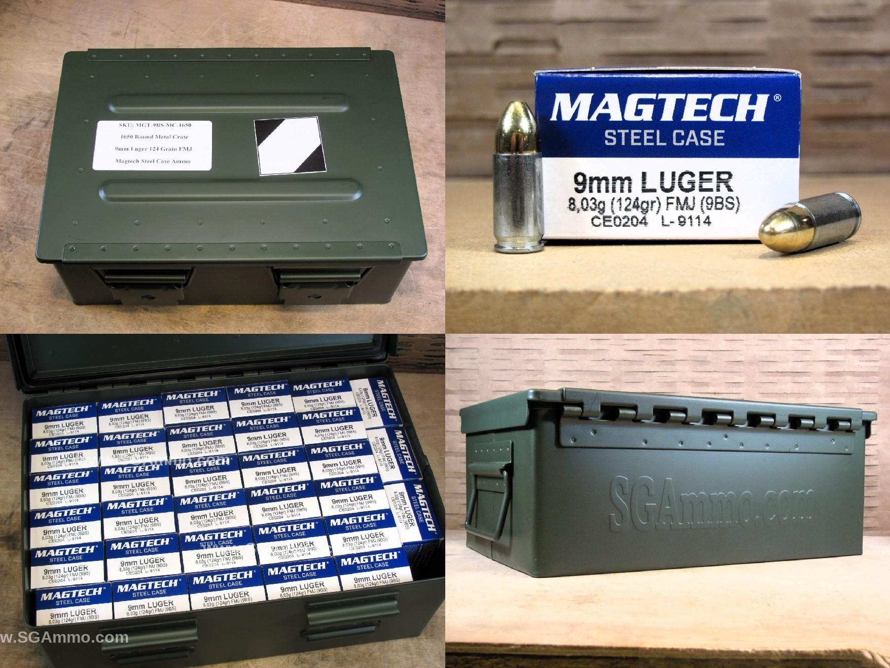 1650 Round Metal Crate Canister - Steel Case 9mm Luger 124 Grain FMJ Magtech Ammo - 9BS