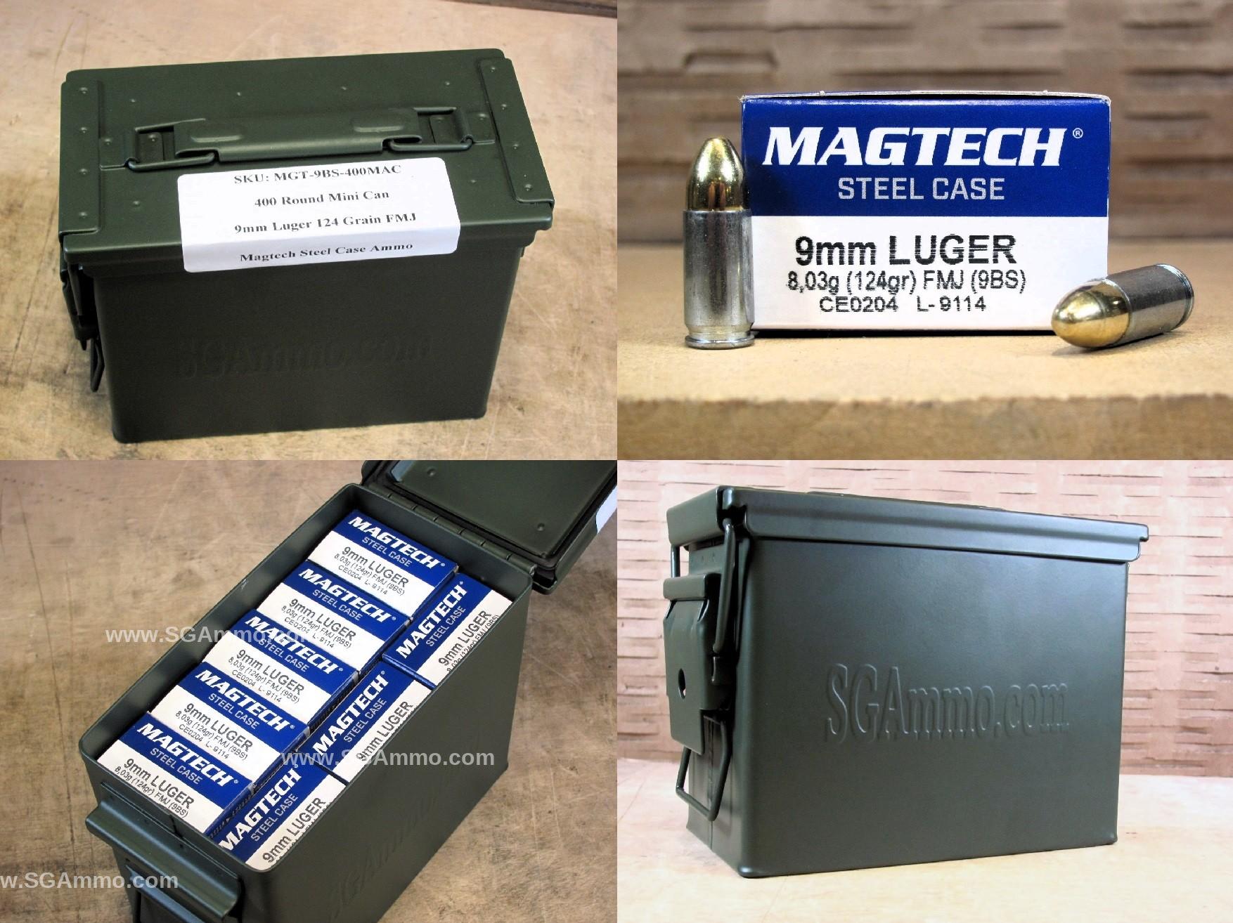 400 Round Can - Steel Case 9mm Luger 124 Grain FMJ Magtech Ammo - 9BS - Packed in Mini Canister