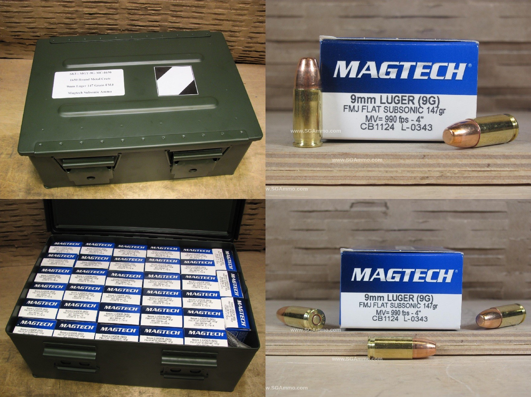 1650 Round Metal Crate Canister - 9mm Luger Subsonic 147 Grain FMJ Ammo by Magtech - 9G