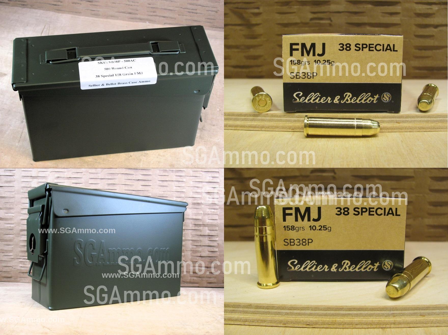 500 Round Can - 38 Special FMJ 158 Grain Sellier Bellot Ammo - SB38P - Packed in M19A1 Canister