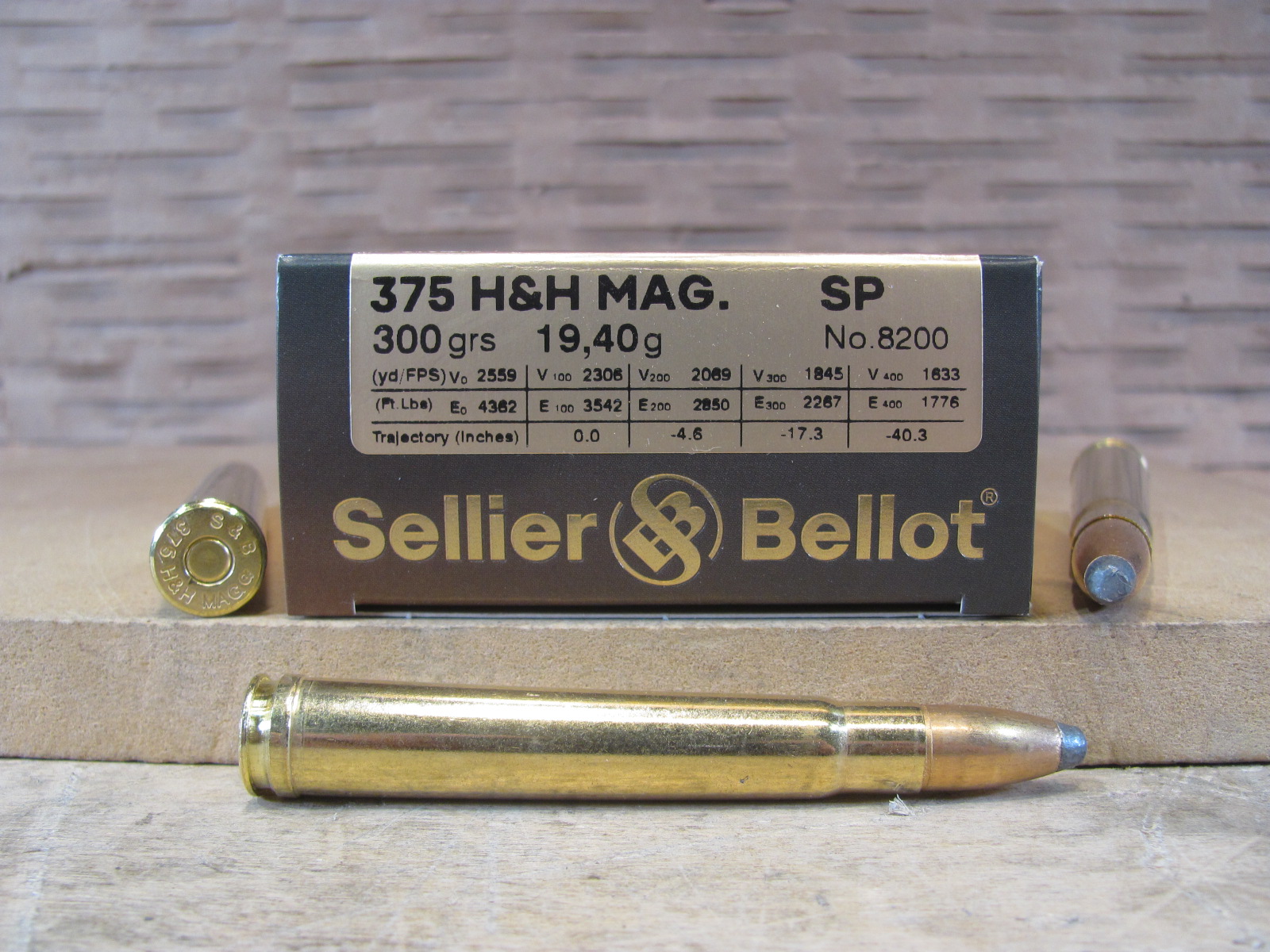10 Round Box - 375 H&H Magnum 300 Grain Soft Point Sellier Bellot Hunting Rifle Ammo - SB375B