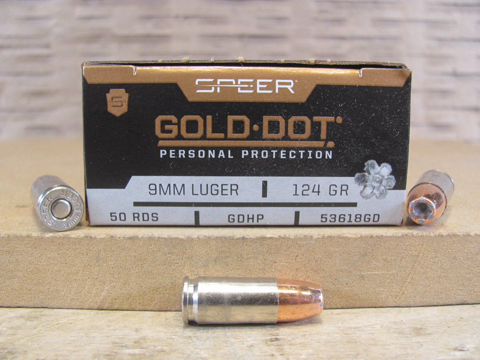 50 Round Box - 9mm Speer Gold Dot 124 Grain LE Hollow Point Ammo - 53618GD