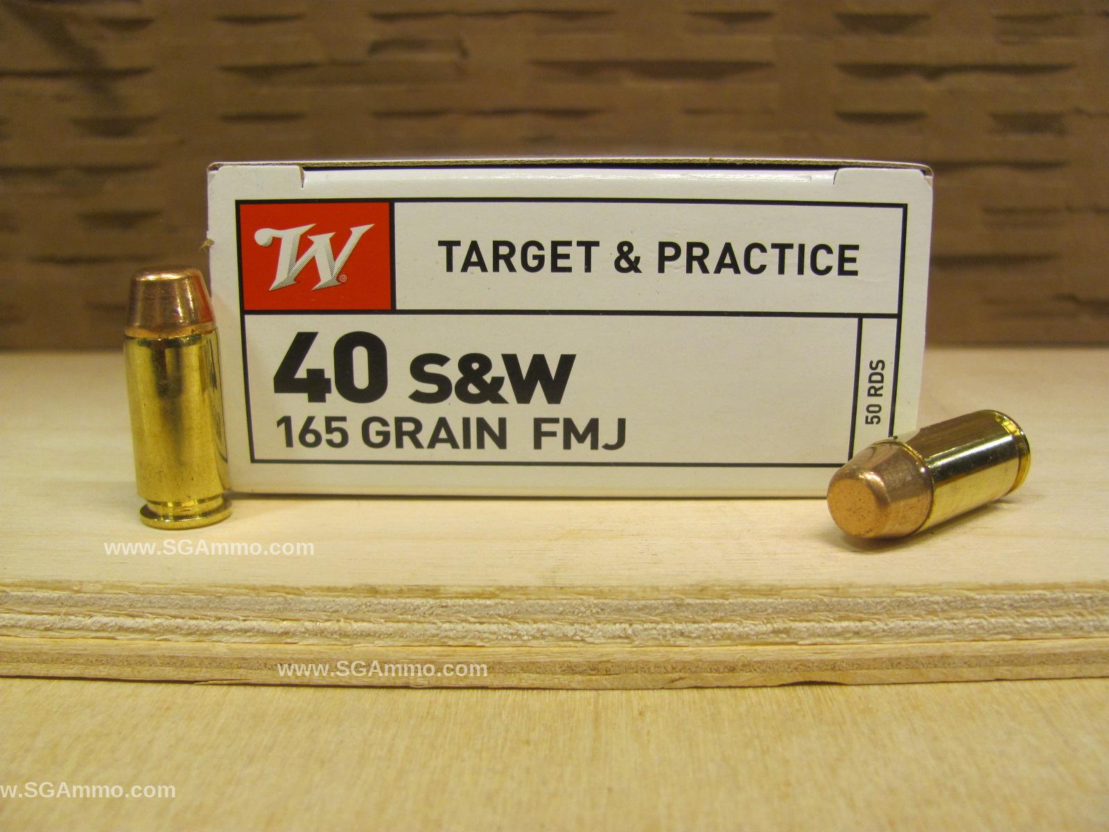 100 Round Box - 40 SW 165 Grain FMJ Winchester Ammo - USA40SWVP