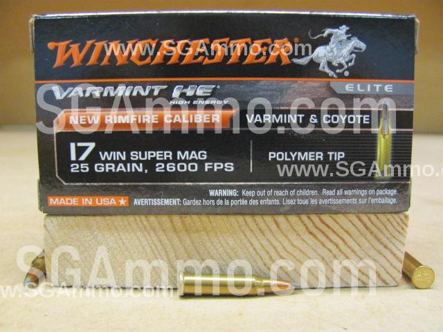 50 Round Box - 17 WSM Winchester Varmint HE Plastic Tip Ammo - 25 Grain 2600 FPS - S17W25