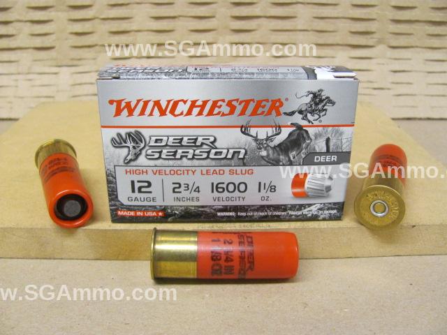 100 Round Case - 12 Gauge 2-3/4 Inch 1600 FPS 1-1/8 Oz Winchester HV Lead Slug Ammo - X12DS