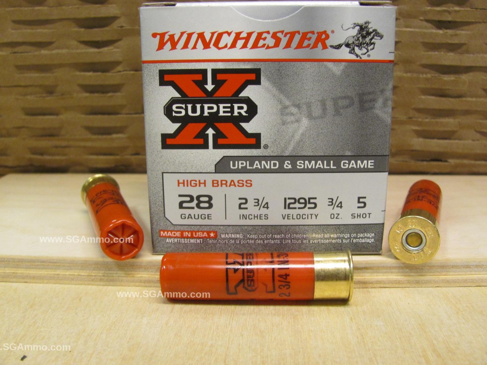 25 Round Box - 28 Gauge 2.75 Inch 3/4 Ounce Number 5 Shot Winchester Super X High Brass Ammo - X285