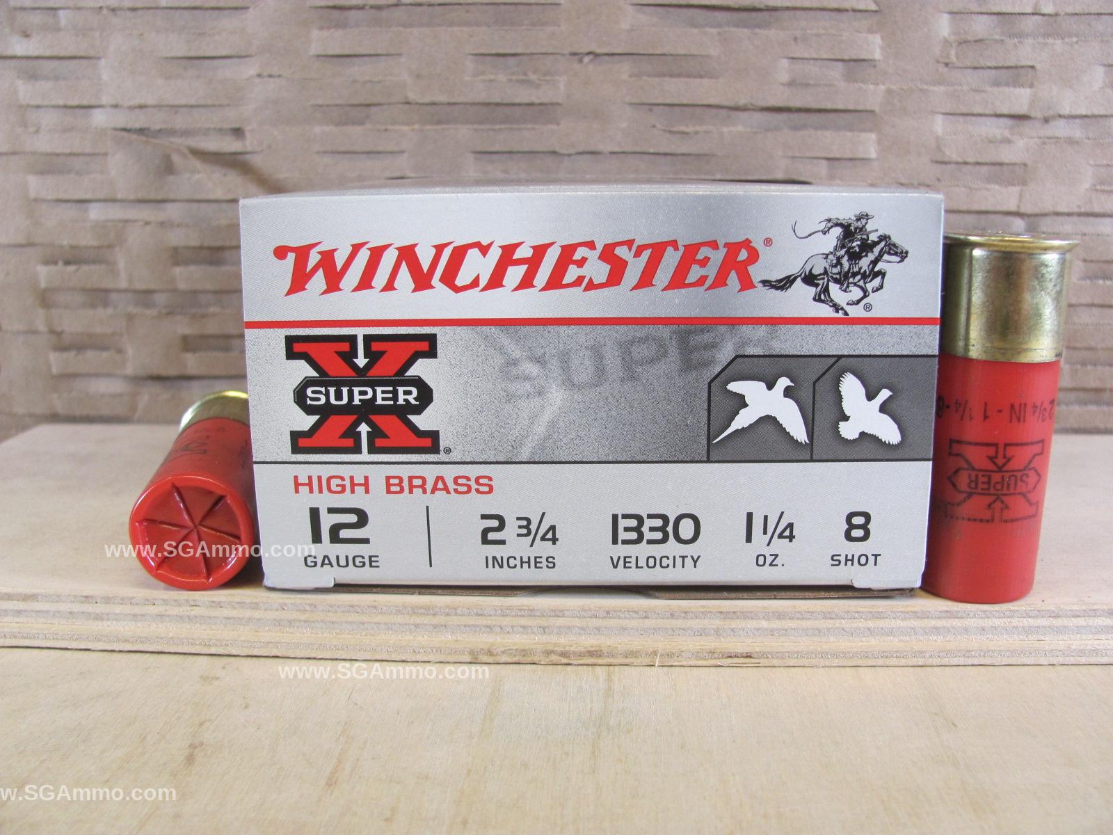 25 Round Box - 12 Gauge 2.75 Inch 1.25 Ounce Number 8 Shot Winchester Super X High Brass Ammo - X128