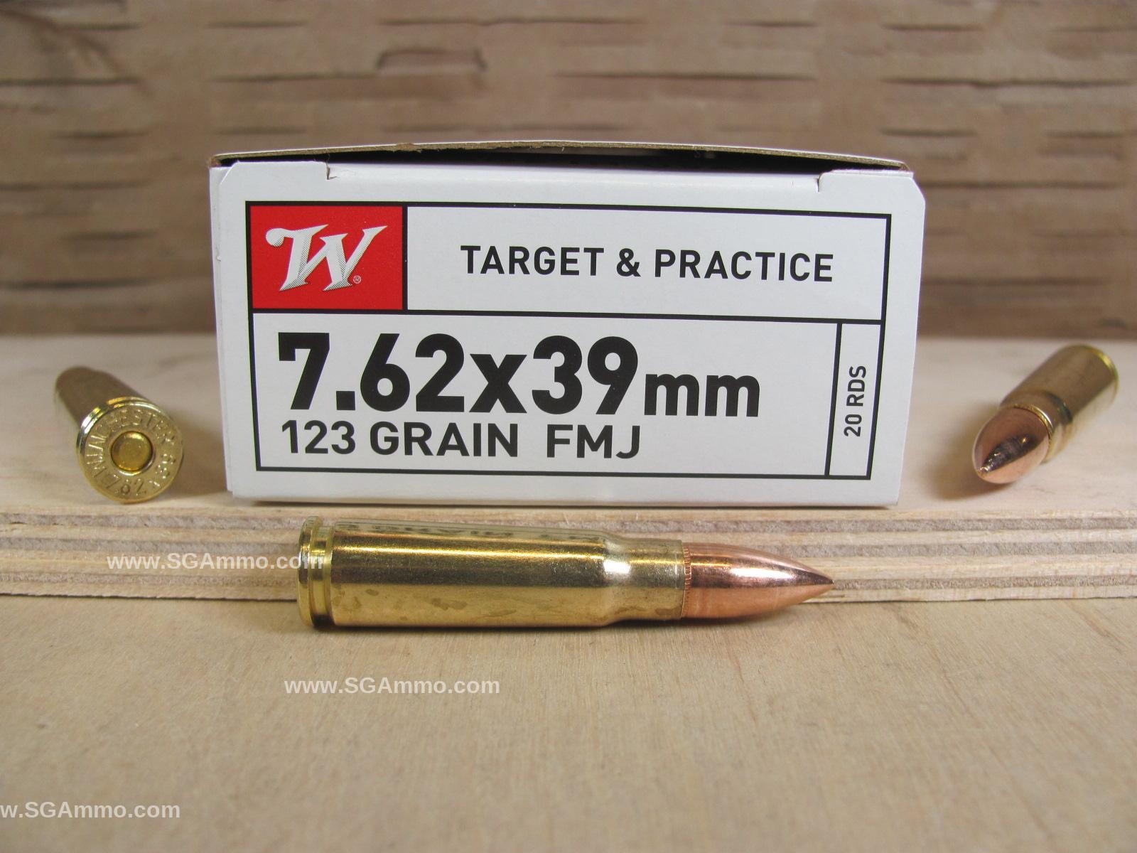 20 Round Box - 7.62x39 123 Grain FMJ Winchester White Box Target Ammo - Q3174