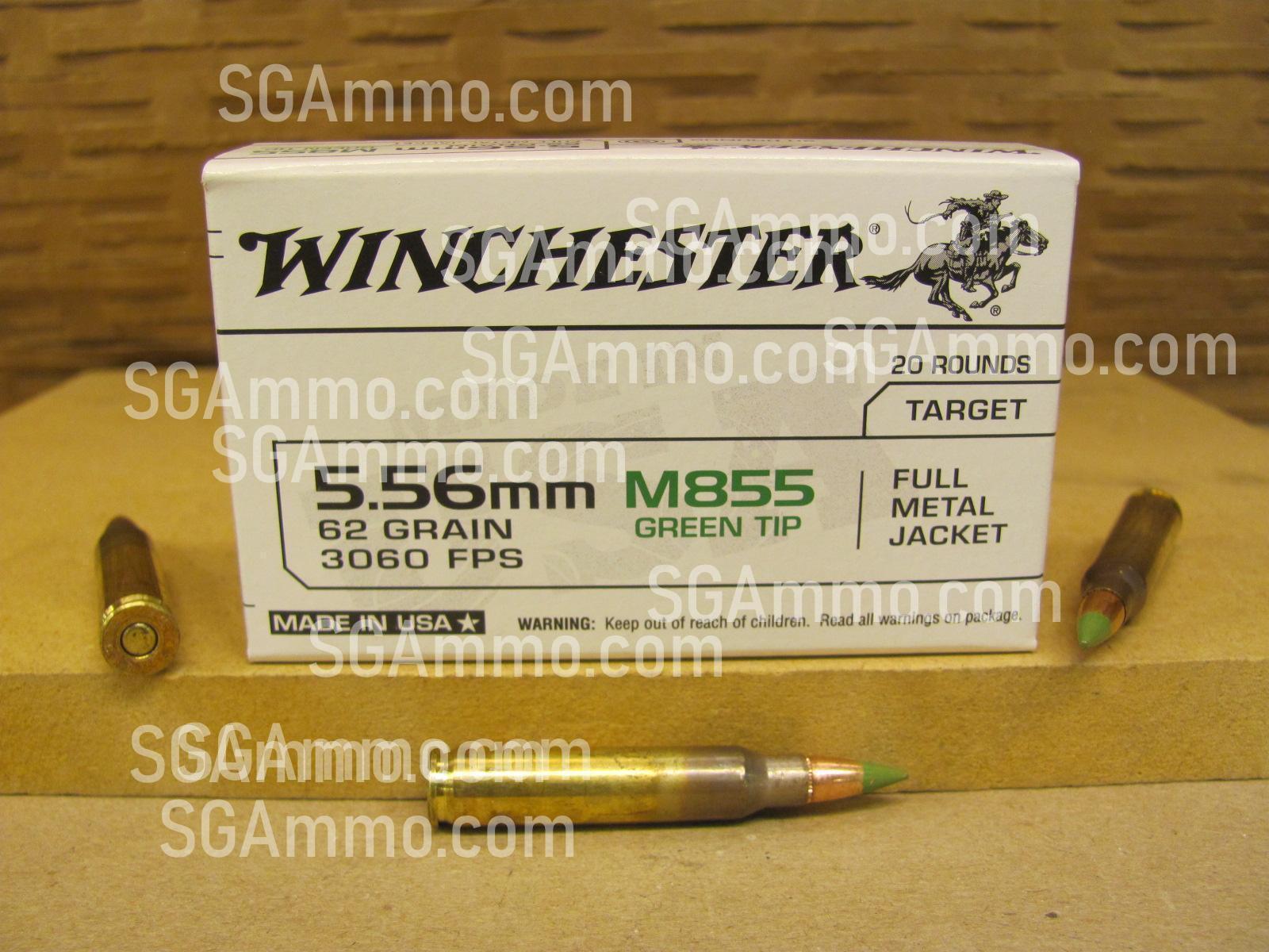 1000 Round Case of 5.56mm 62 Grain FMJ M855 Green Tip Winchester Ammo For Sale SKU # WM855K Could be either white box or brown box
