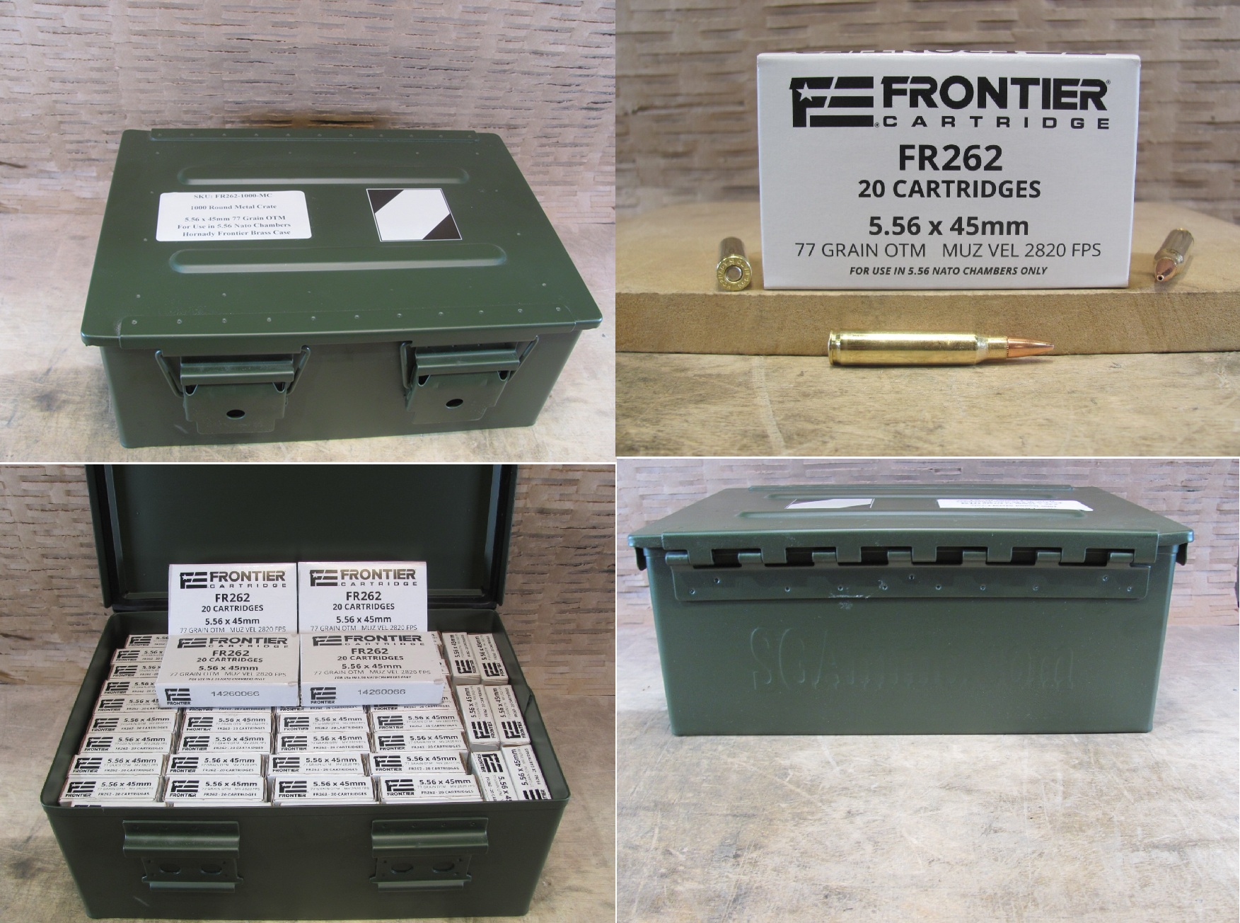 1000 Round Metal Crate Canister of 5.56 x 45mm 77 Grain Open Tip Match Frontier Ammo For Sale - FOR USE IN 5.56 NATO CHAMBERS ONLY