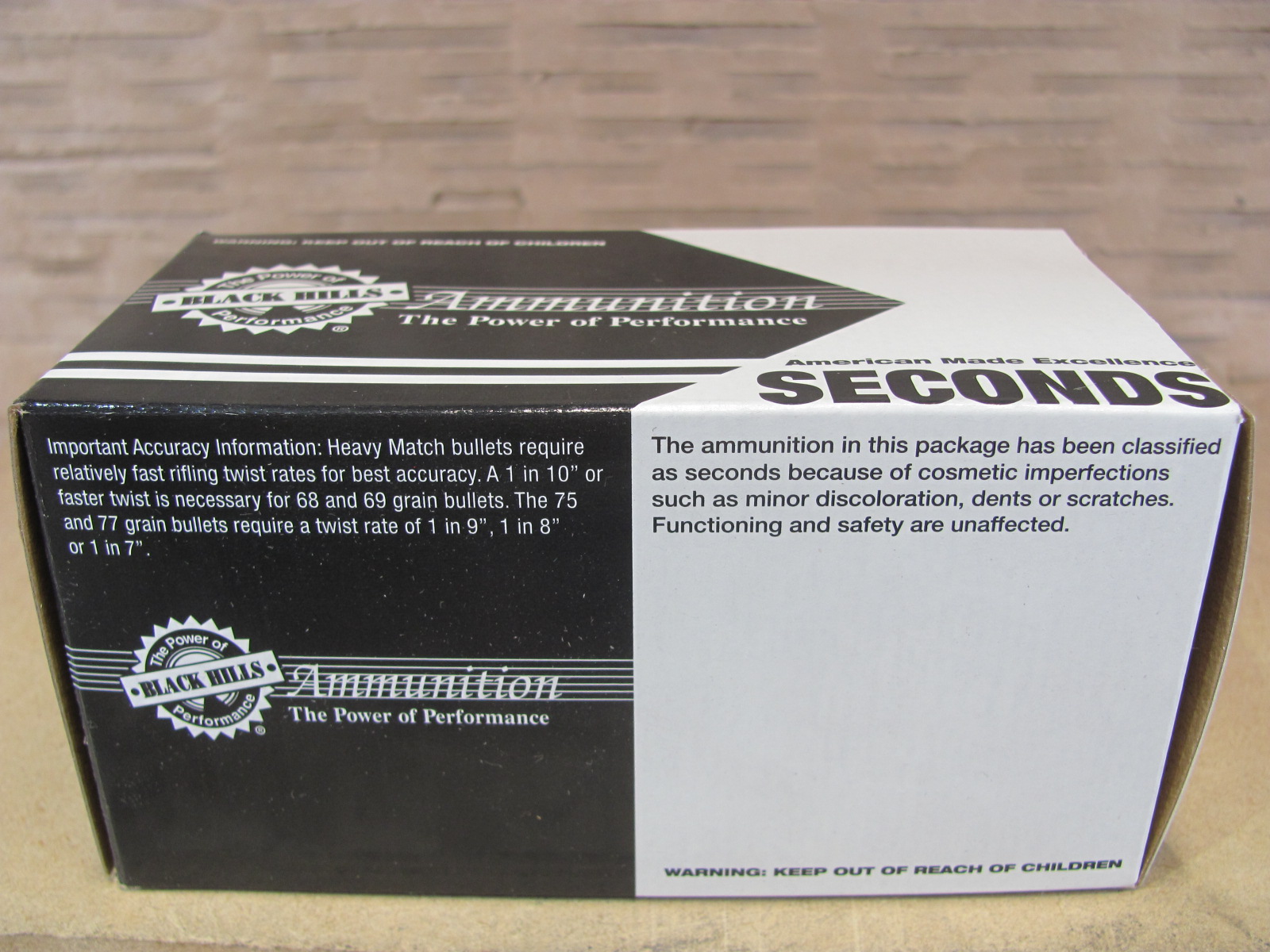 This is ammunition from Black Hills that has been classified as 'Factory Seconds' because of cosmetic imperfections such as minor discoloration, dents, or scratches. Functioning, safety, and performance are unaffected.