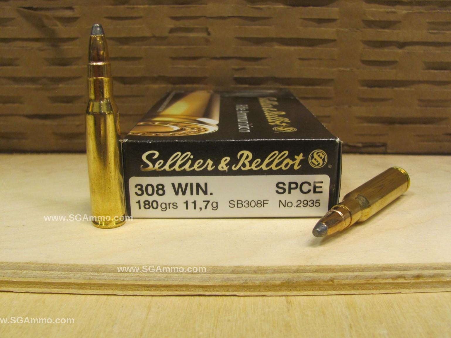 20 Round Box of 308 Win 180 Grain SPCE Soft Point Sellier Bellot Ammo For Sale SKU# SB308F 25 x 20 Round Boxes per 500 Round Case Muzzle Velocity: 2510 fps