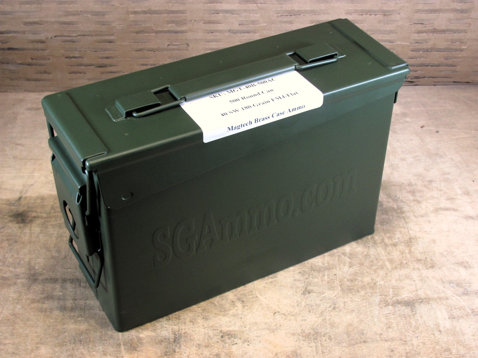500 Round Can - 40 cal SW 180 Grain FMC-Flat Point Magtech Ammo For Sale - 40B - Packed in M19A1 Canister