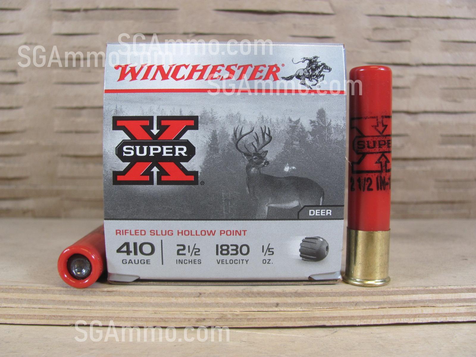 150 Round Case of 410 Gauge 2.5 Inch 1/5 Ounce Winchester Rifled Slug Hollow Point Super X Ammo For Sale SKU # X41RS5VP 1830 FPS
