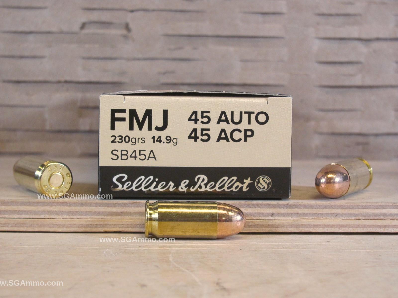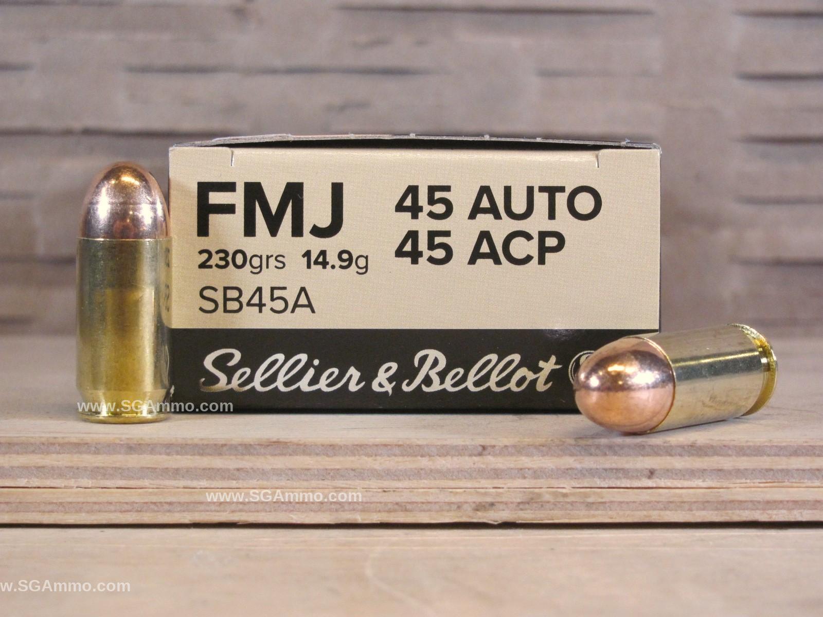 This ammo features a 230 grain FMJ bullet with range-safe copper jacket. These .45 Auto cartridges are brass case, reloadable and non-corrosive boxer primer. This is great target ammo and supplies are very limited. Sellier & Bellot ammunition has been made in the Czech Republic since 1825 and is one of the worlds most experienced ammo factories. If you are looking for high quality 45 ammo then this may be the ammunition for you. Top quality ammo for a competitive price. At SGAmmo.com we only sell in-stock ammo, if our website lets you order it then we have it and it will ship to you right away, typically leaving our warehouse within 1 or 2 business days via UPS.