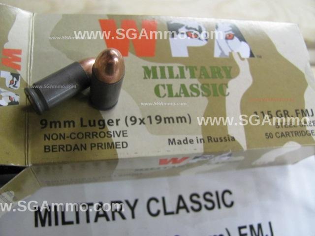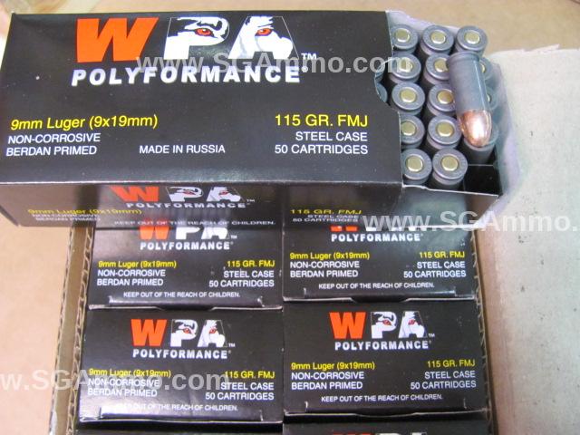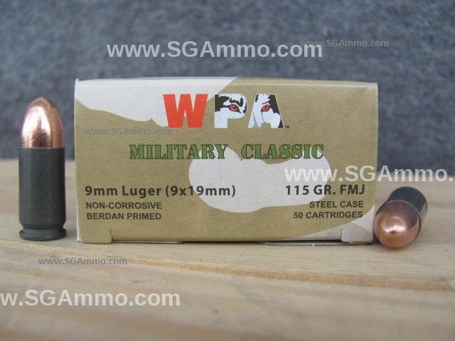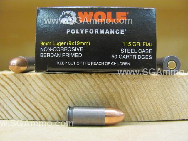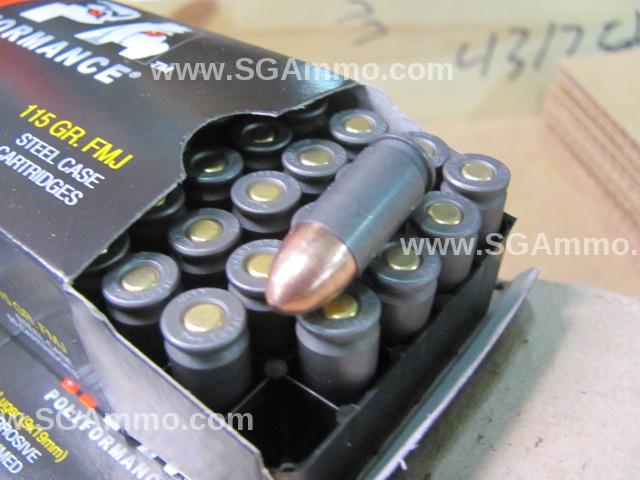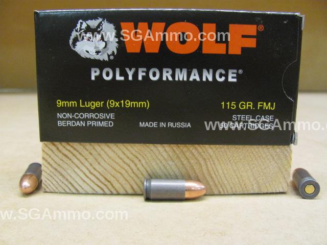 500 Round Case – 9mm Luger 115 Grain FMJ Steel Case Wolf Polyformance or Military Classic Ammo