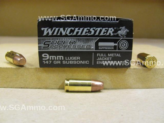 Winchester Super Suppressed 9mm Luger Ammo - 500 Rounds of 147 Grain FMJ Encapsulated - Bulk Case - SUP9
