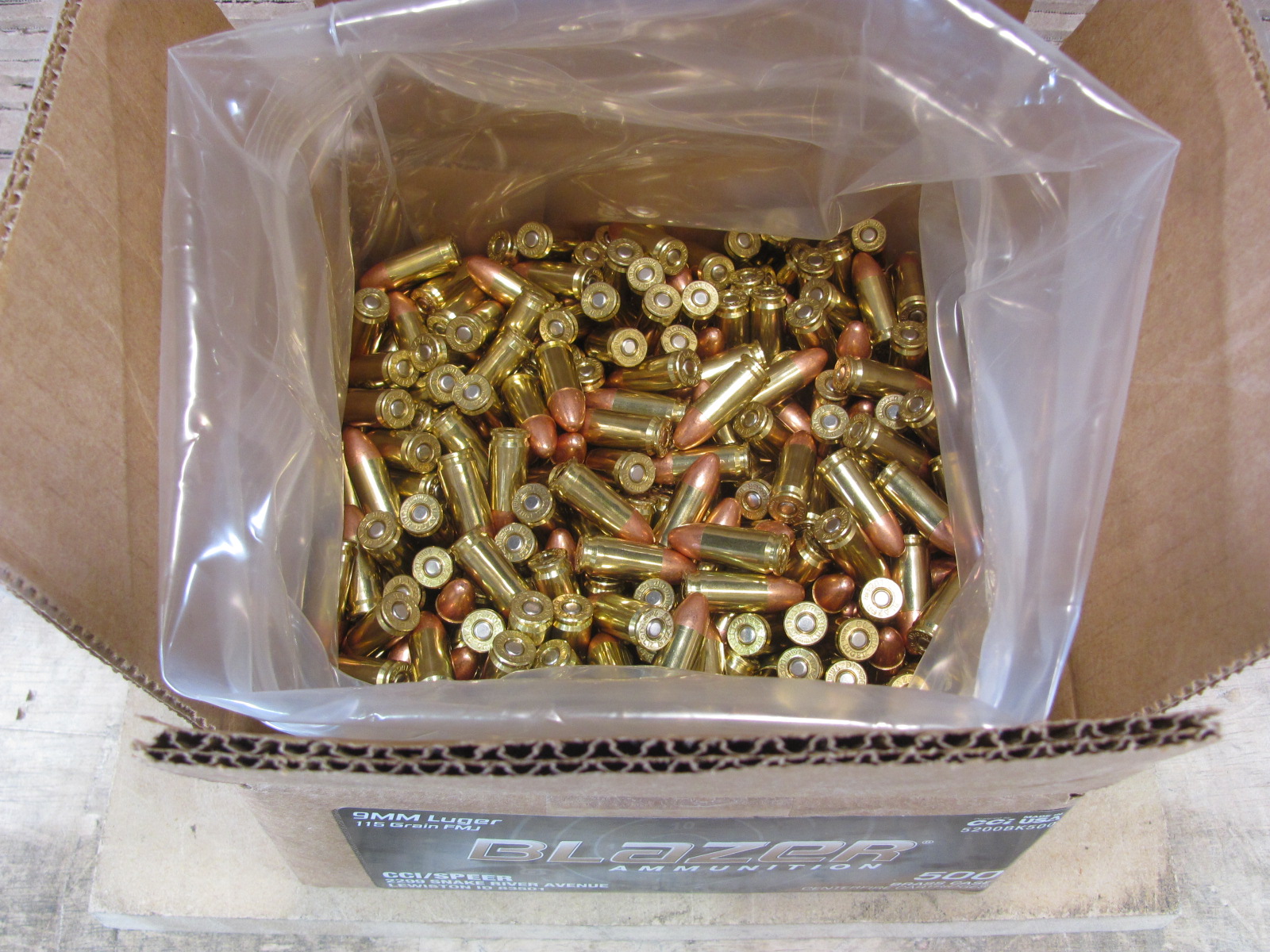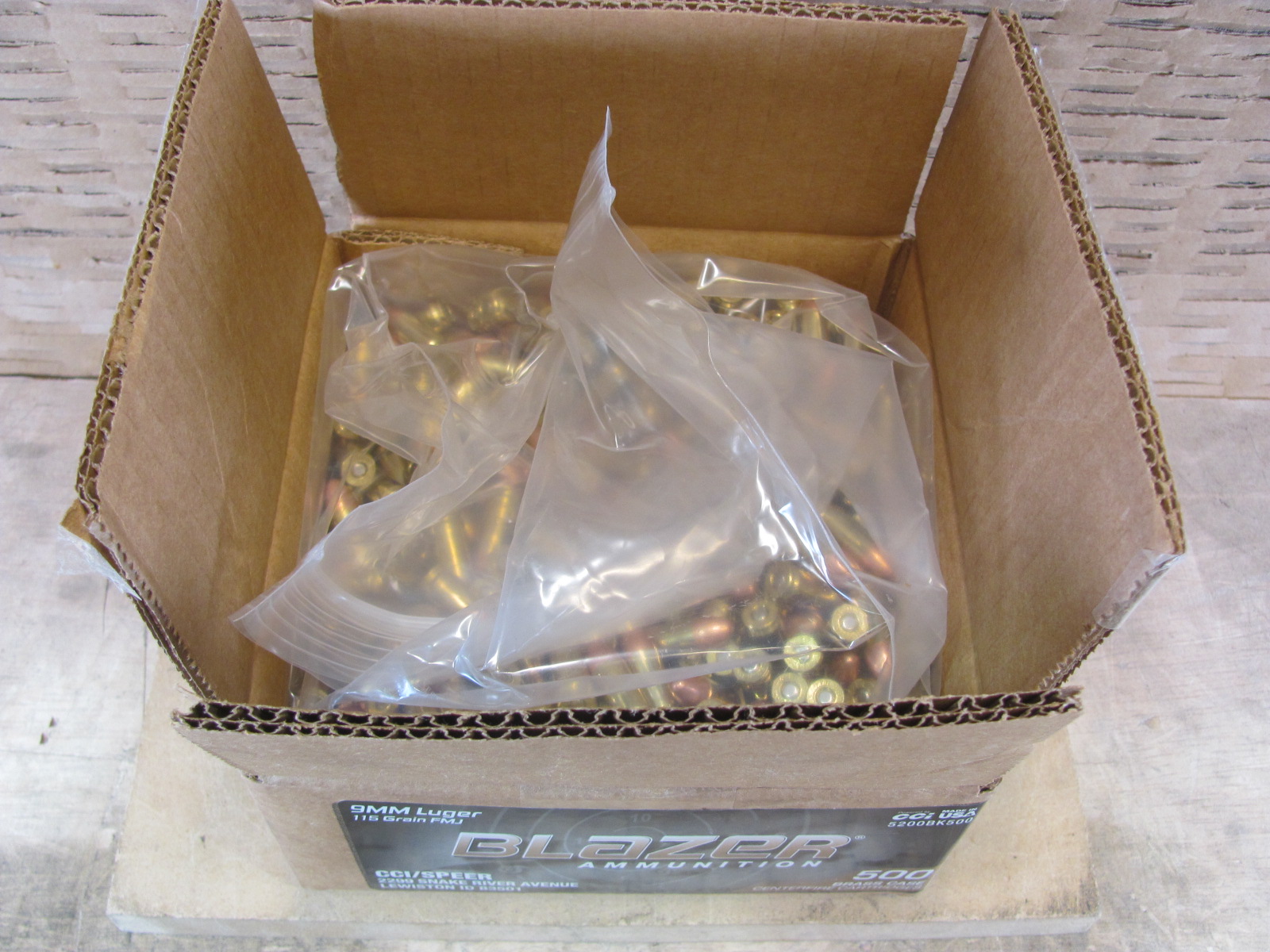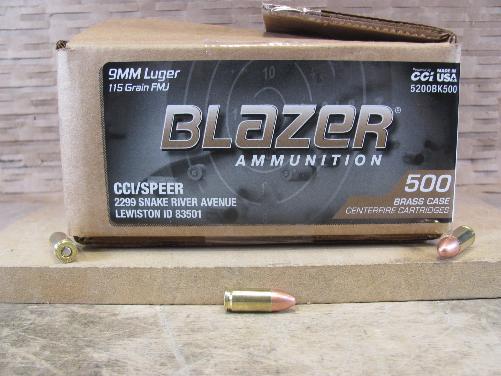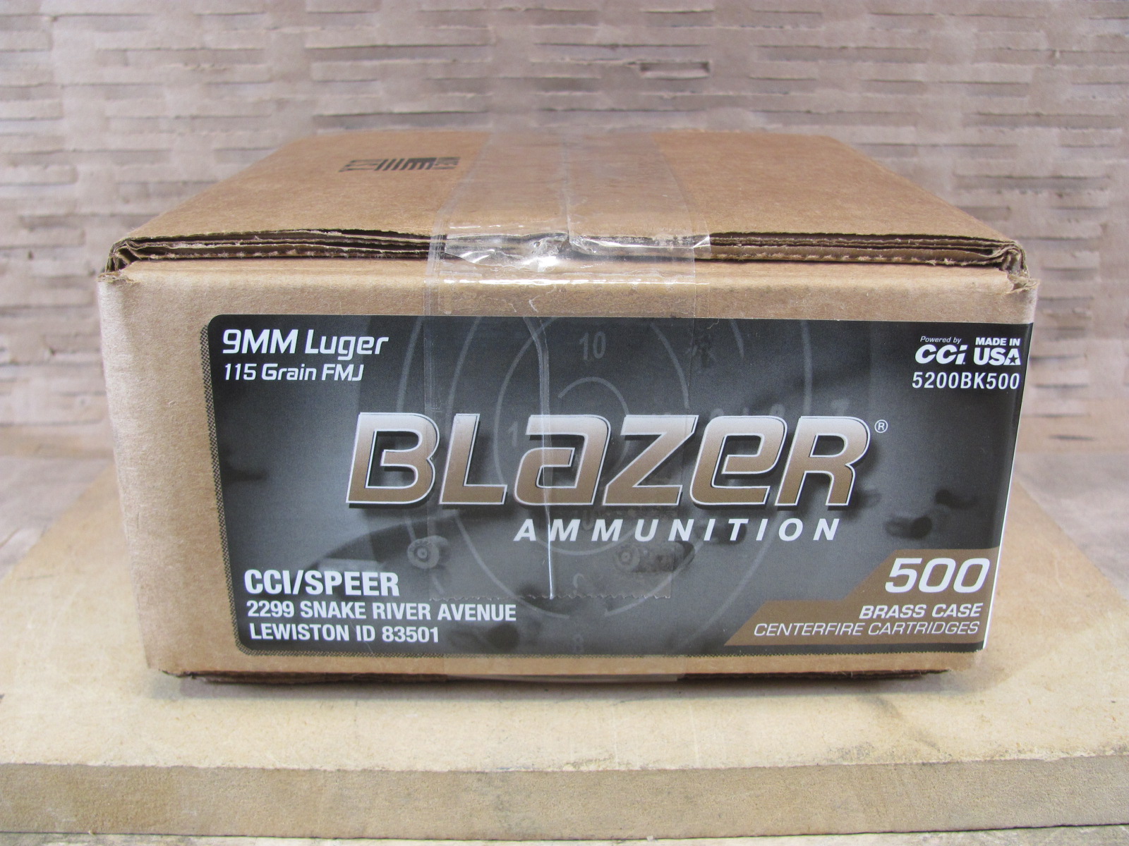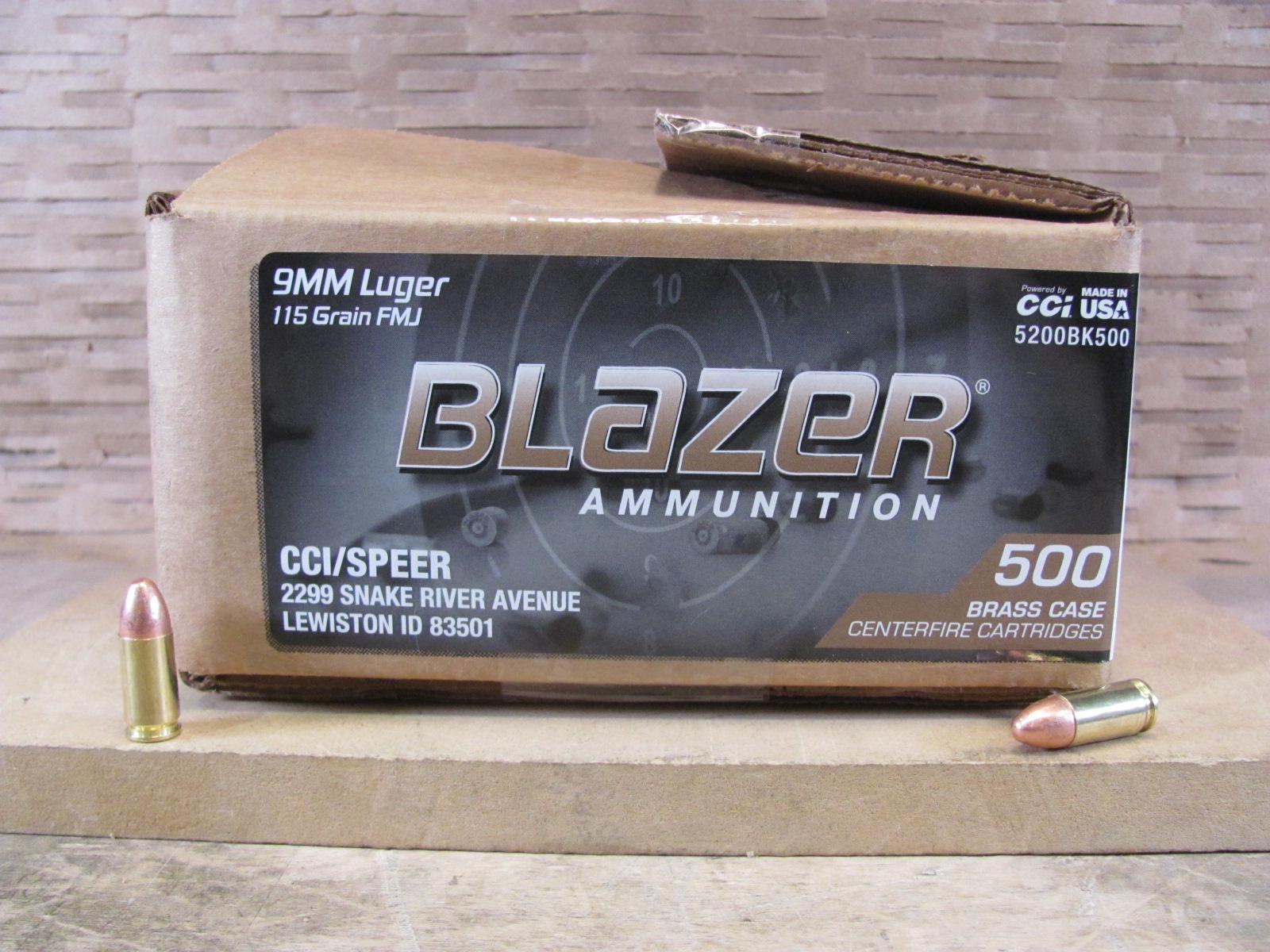 1000 Rounds of 9mm Luger 115 Grain FMJ CCI Blazer Brass Ammo - 5200BK500 - SP21114 For Sale