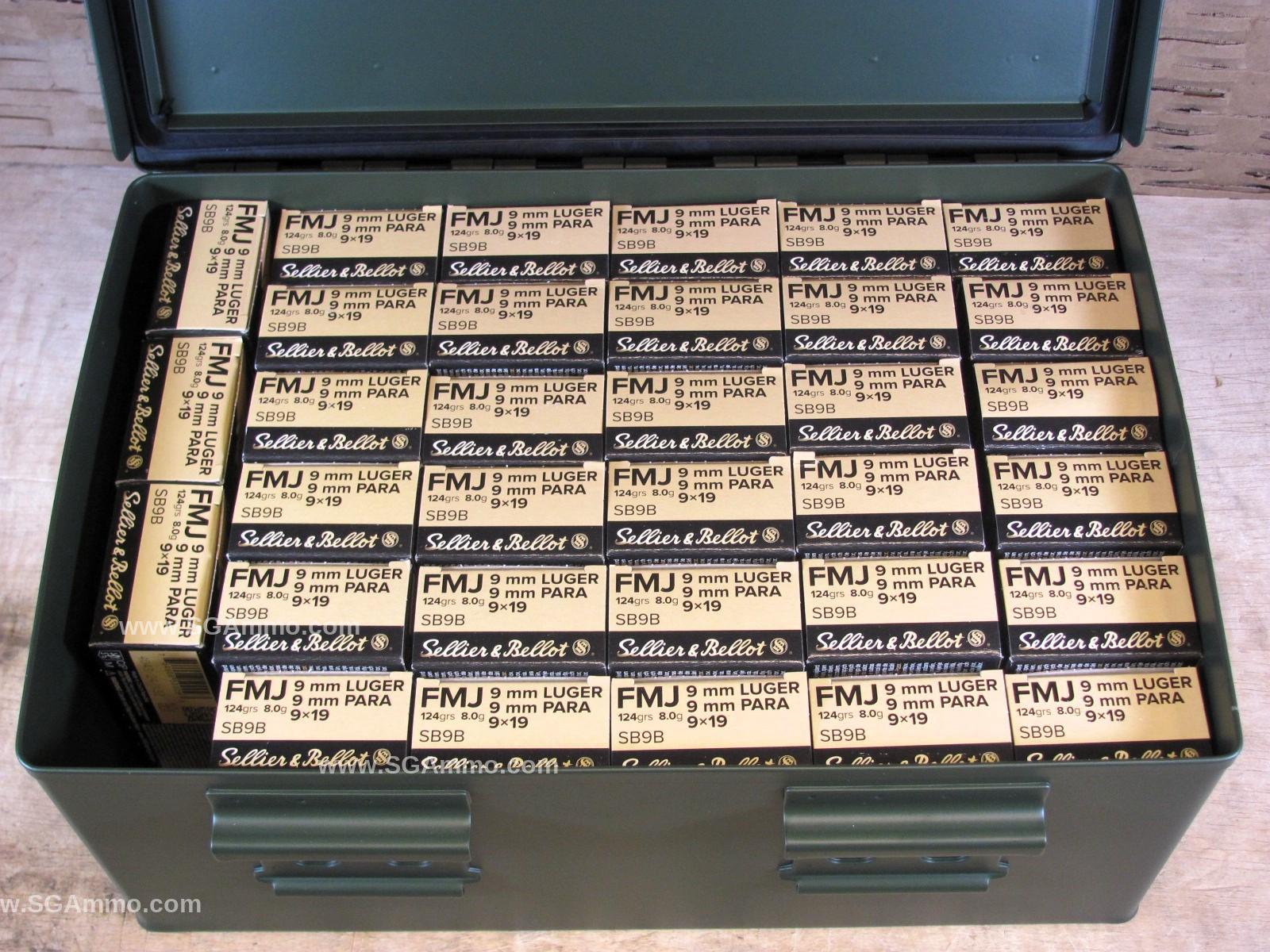 Sellier & Bellot 9mm Luger 124 Grain FMJ Ammo – 1650-Round Metal Crate Canister (SB9B)