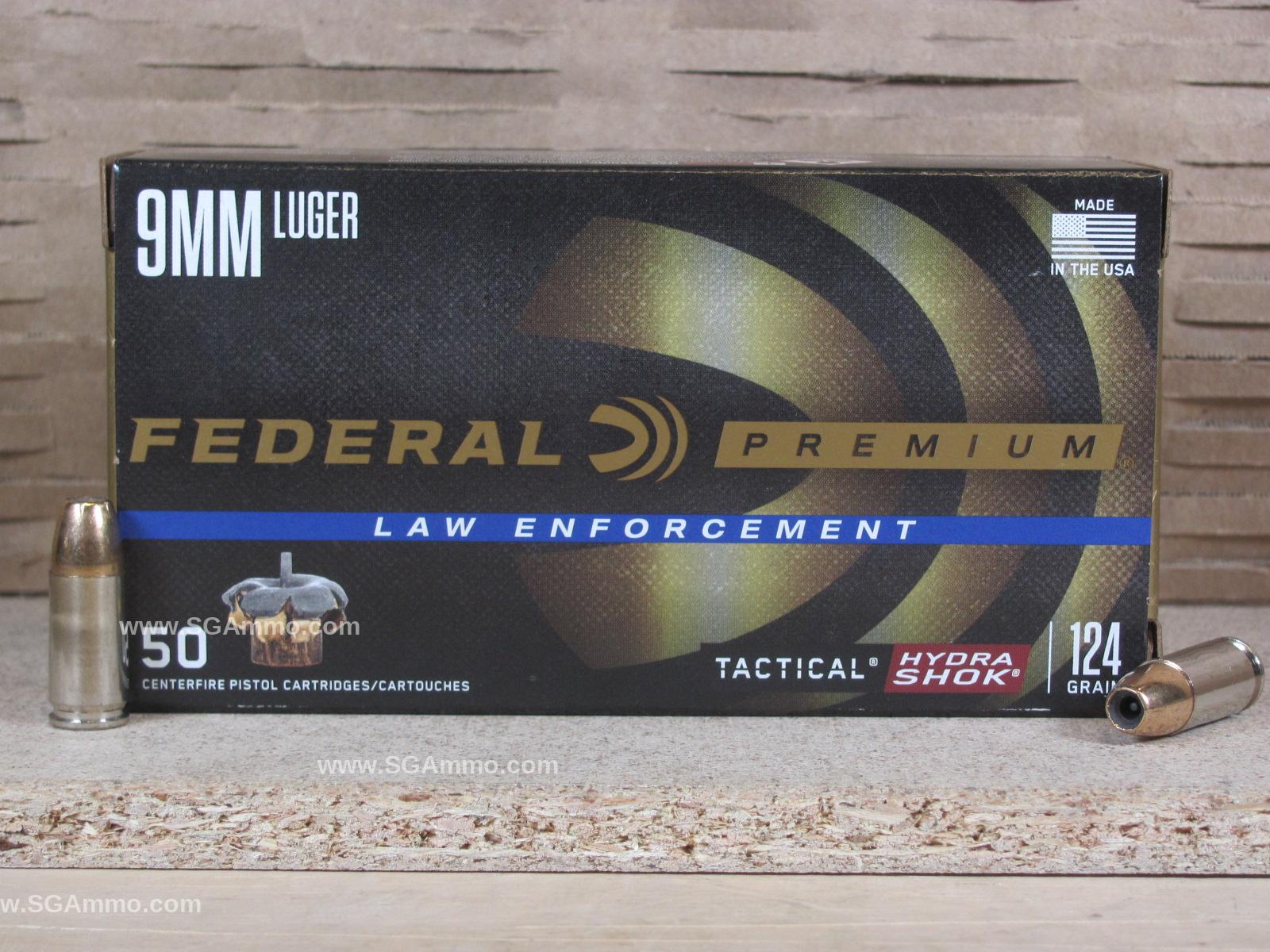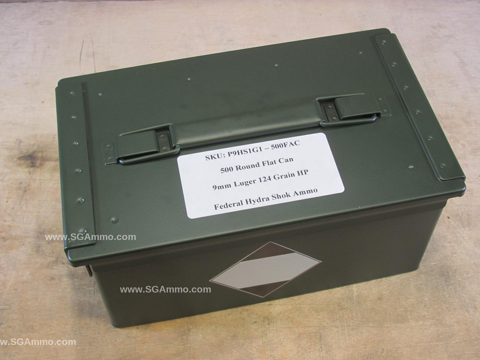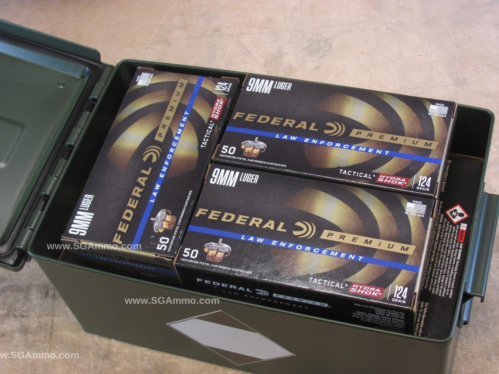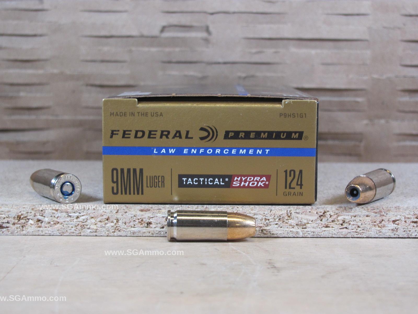 Federal Premium Law Enforcement Hydra-Shok 9mm Luger 124 Grain JHP – 500 Round Flat Can (P9HS1G1)