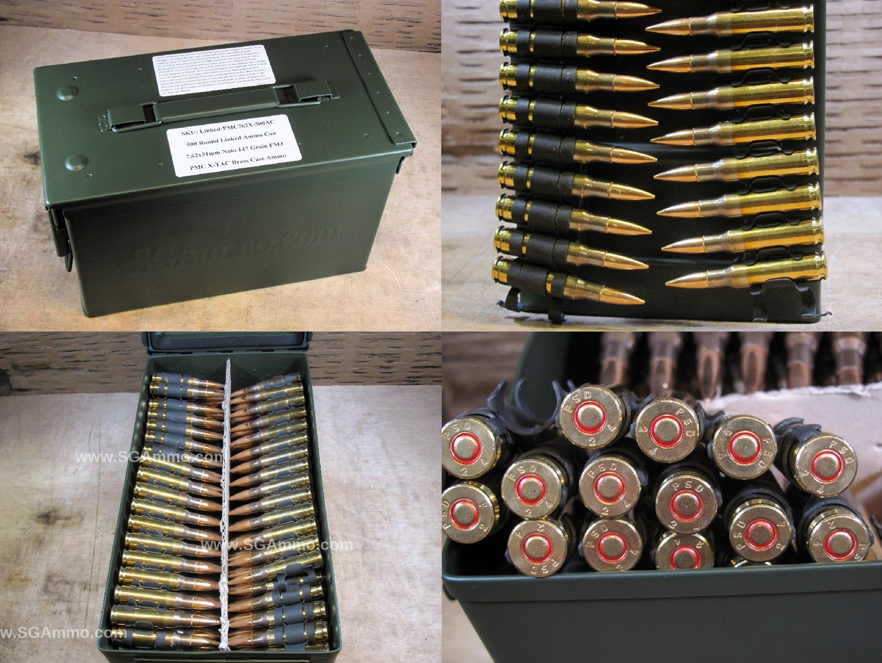 500 Round Can - Linked 7.62x51 Nato 147 Grain FMJ PMC X-TAC Ammo on M13 Links - 7.62X - Packed in M2A1 Canister